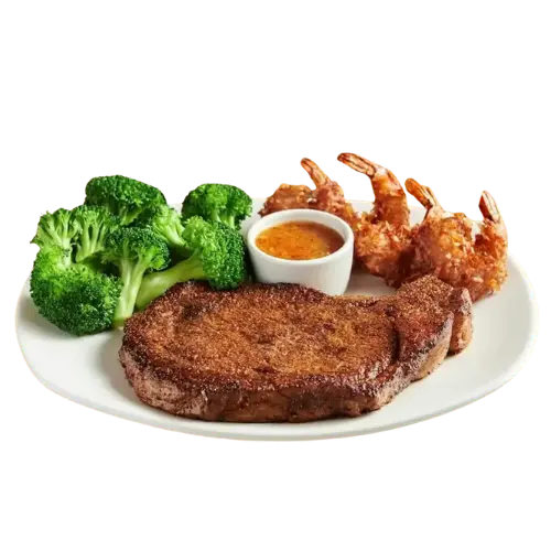 Sirloin & Shrimp Combo: This combo features a juicy sirloin with either grilled shrimp or crispy coconut shrimp according to your taste.