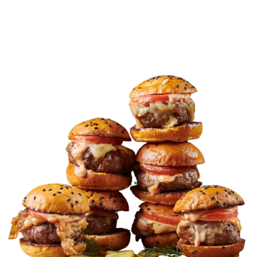 Lil’ Meatless BRG & Truffle Fries: A mini plant-based burger served with crispy fries flavored with truffle oil.